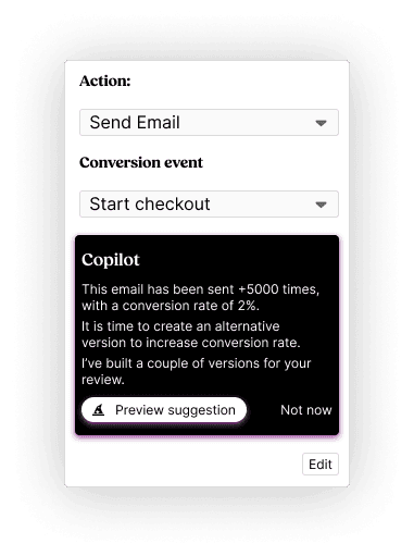 Take a look at the Actions marketSay hello to a trained, private, real-time AI engine for your marketing, fully embedded in your workflow and automation actions.