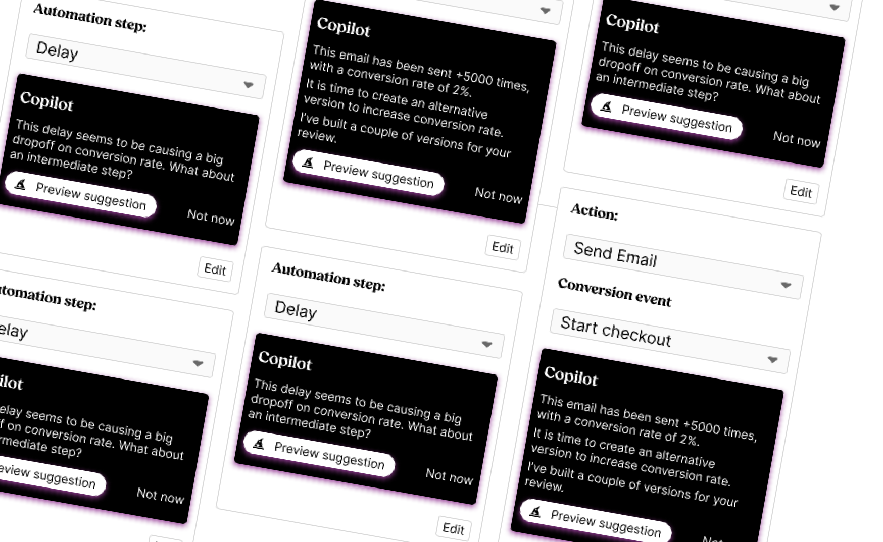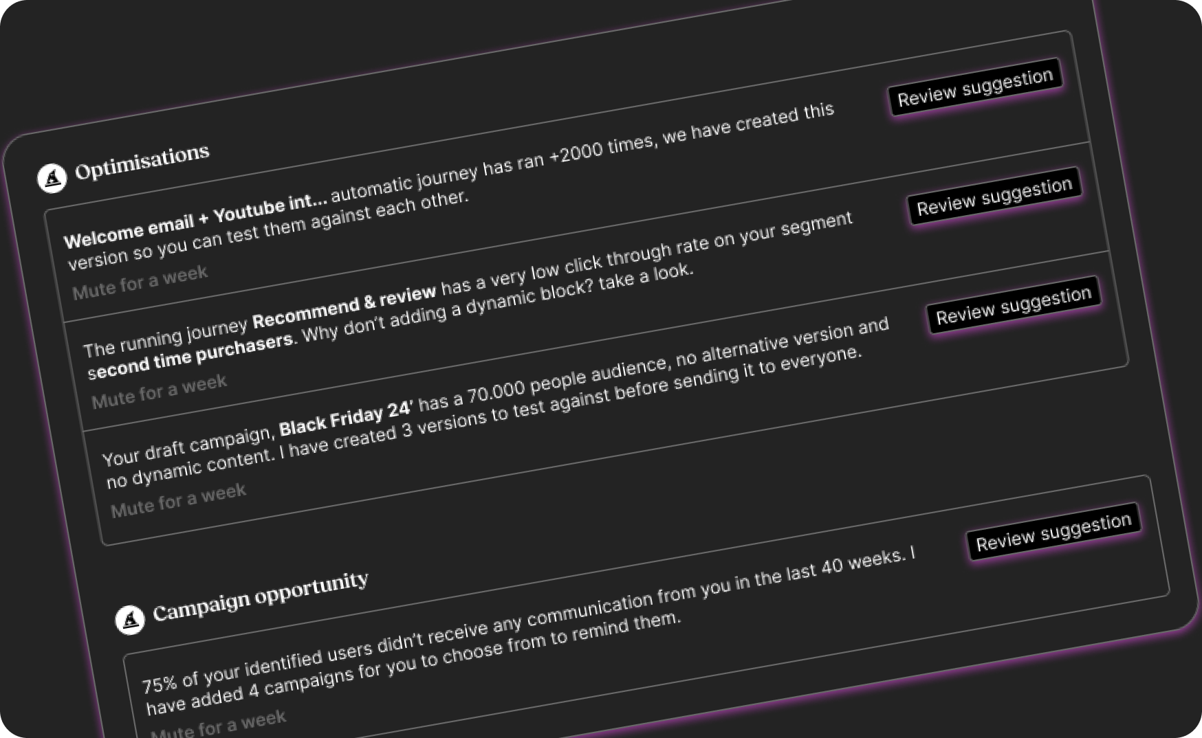 Merging the power of having a trained AI on your customer journeys + conversion rates inside your automation steps, brings us inline enhancements to your marketing campaigns from start to end.