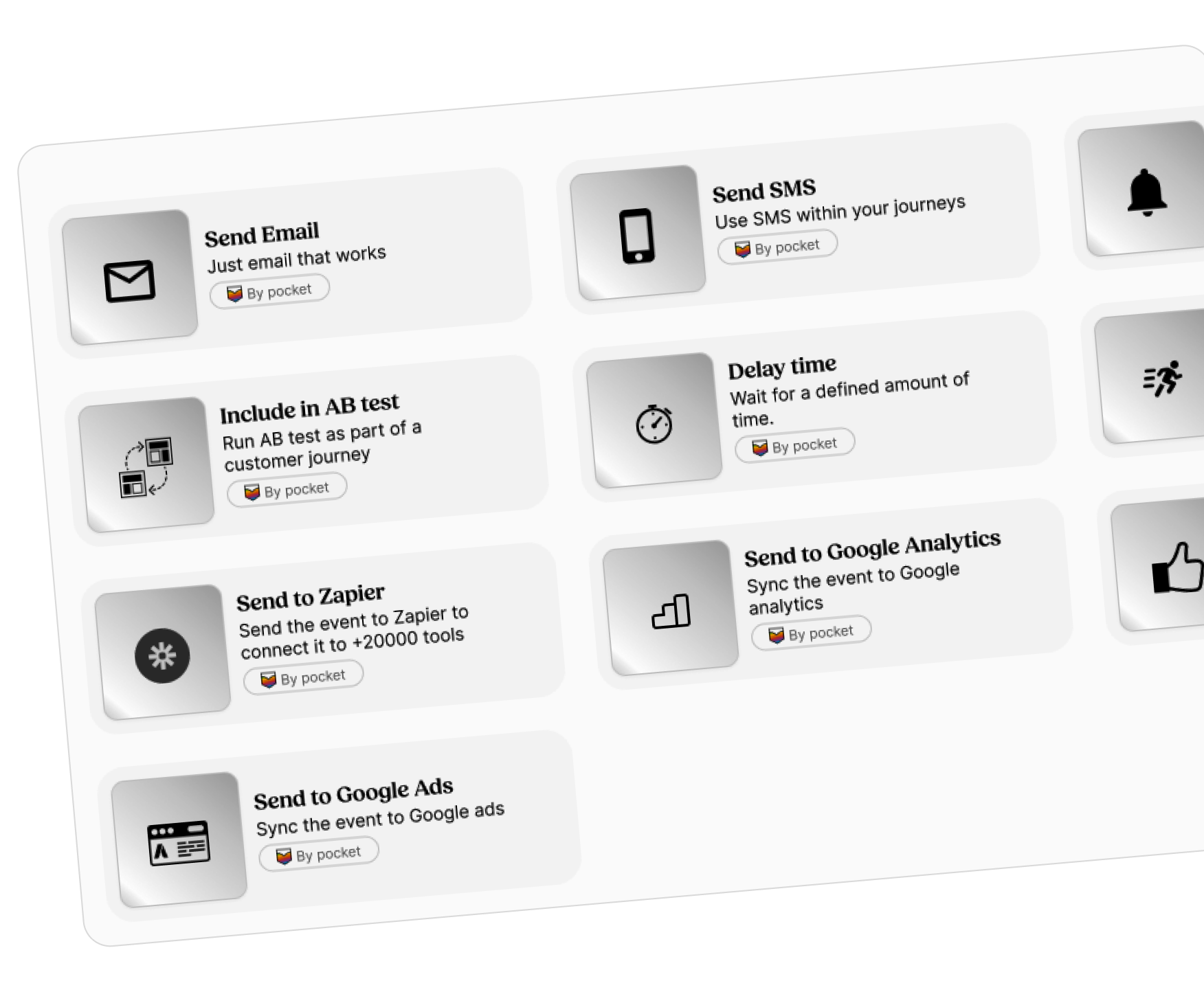 Orchestrate anything inside a marketing automation flow, with a one click install from the actions marketplace