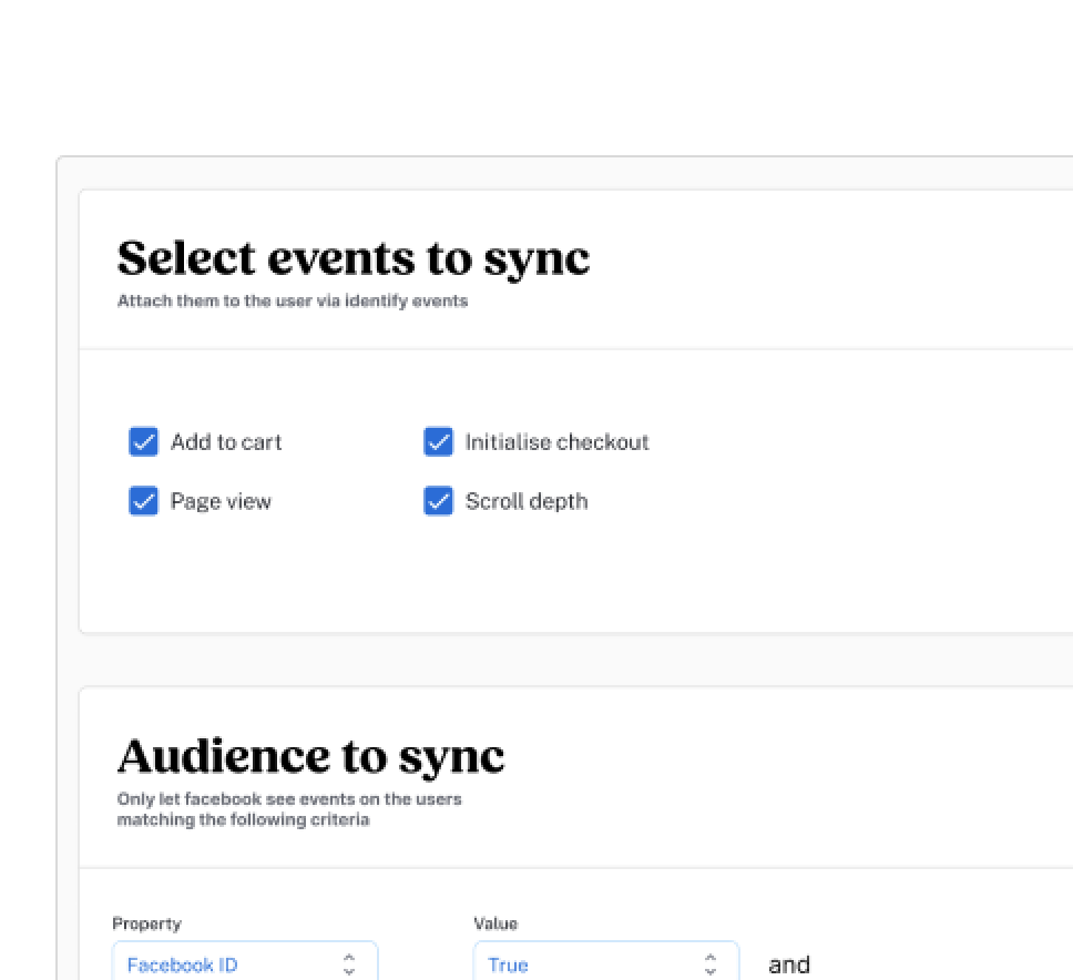 Create custom events, define their properties and and start using them in your analytics or marketing automation.